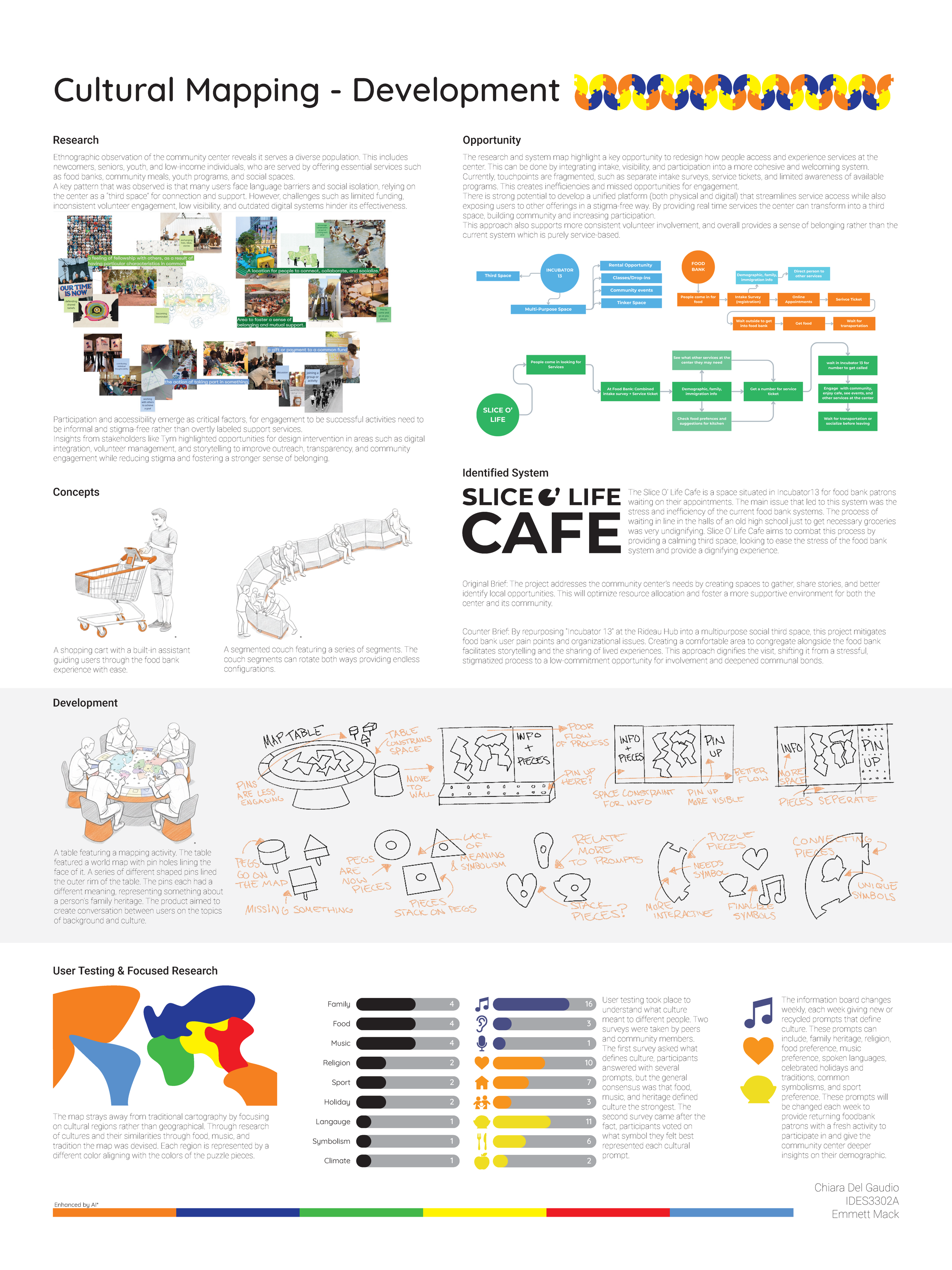 A cultural mapping activity for food bank patrons. Focused on building community and gathering data for the community center.