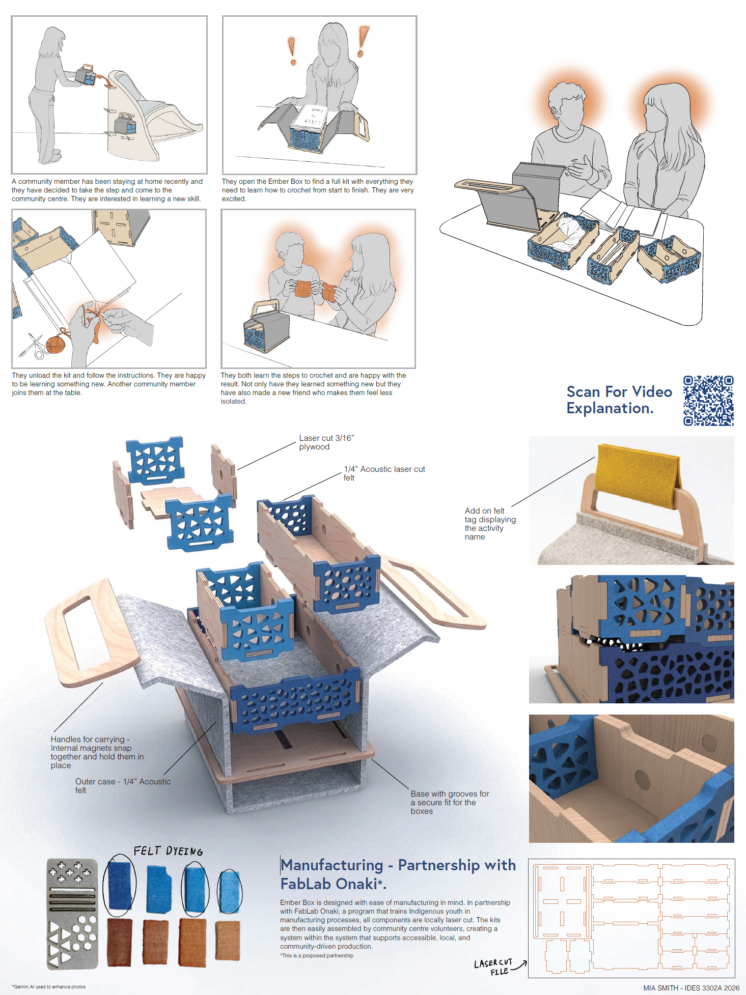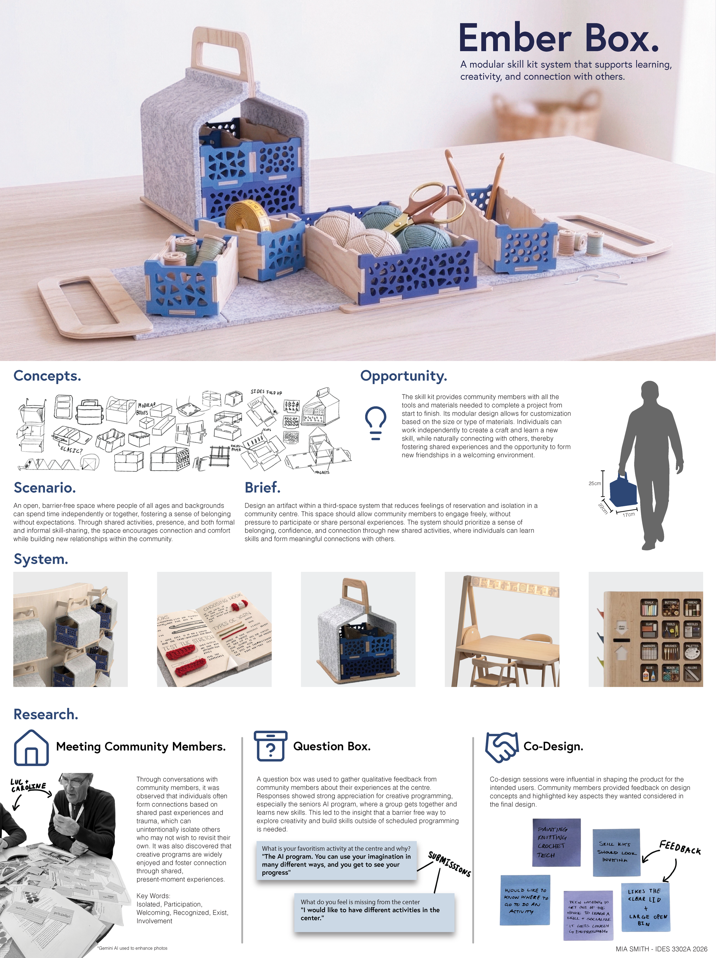 Ember Box is a modular skill kit system that supports hands-on learning, creativity, and meaningful connection with others, allowing individuals to create independently while naturally encouraging shared experiences.