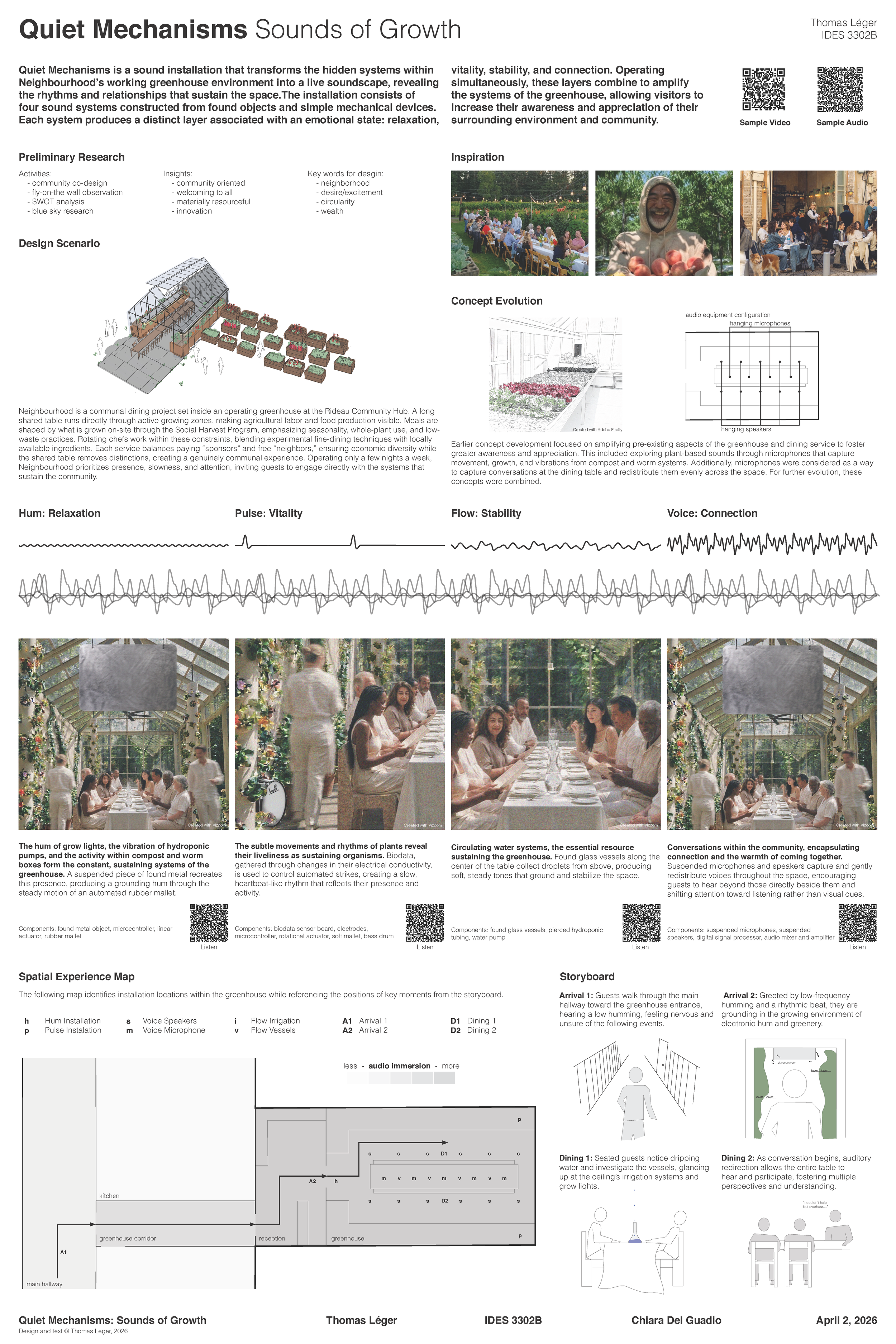 Quiet Mechanisms is an immersive sound installation that amplifies the hidden systems within the Social Harvest greenhouse.